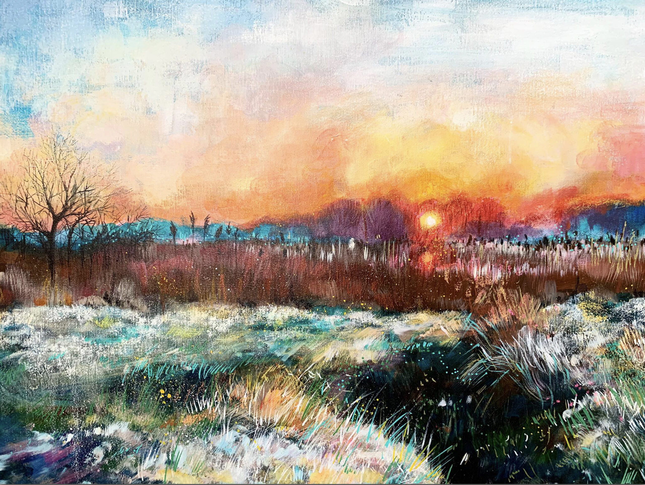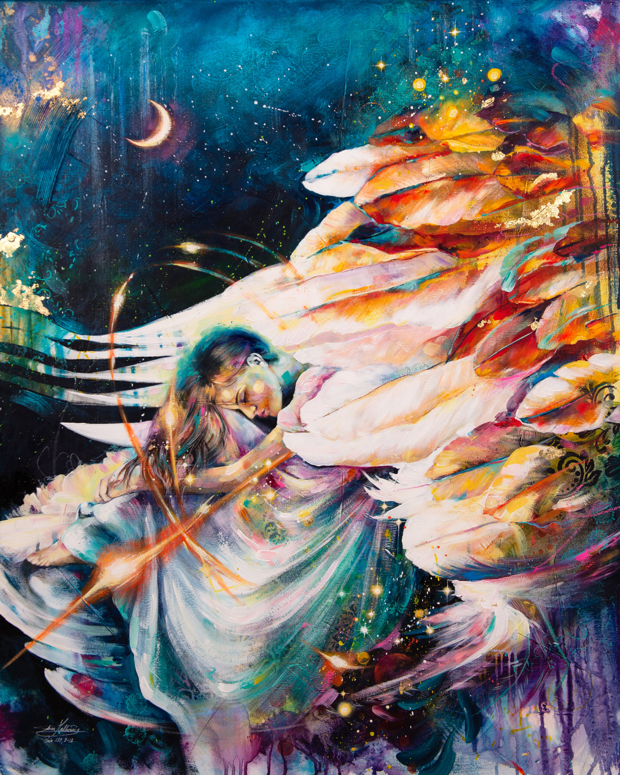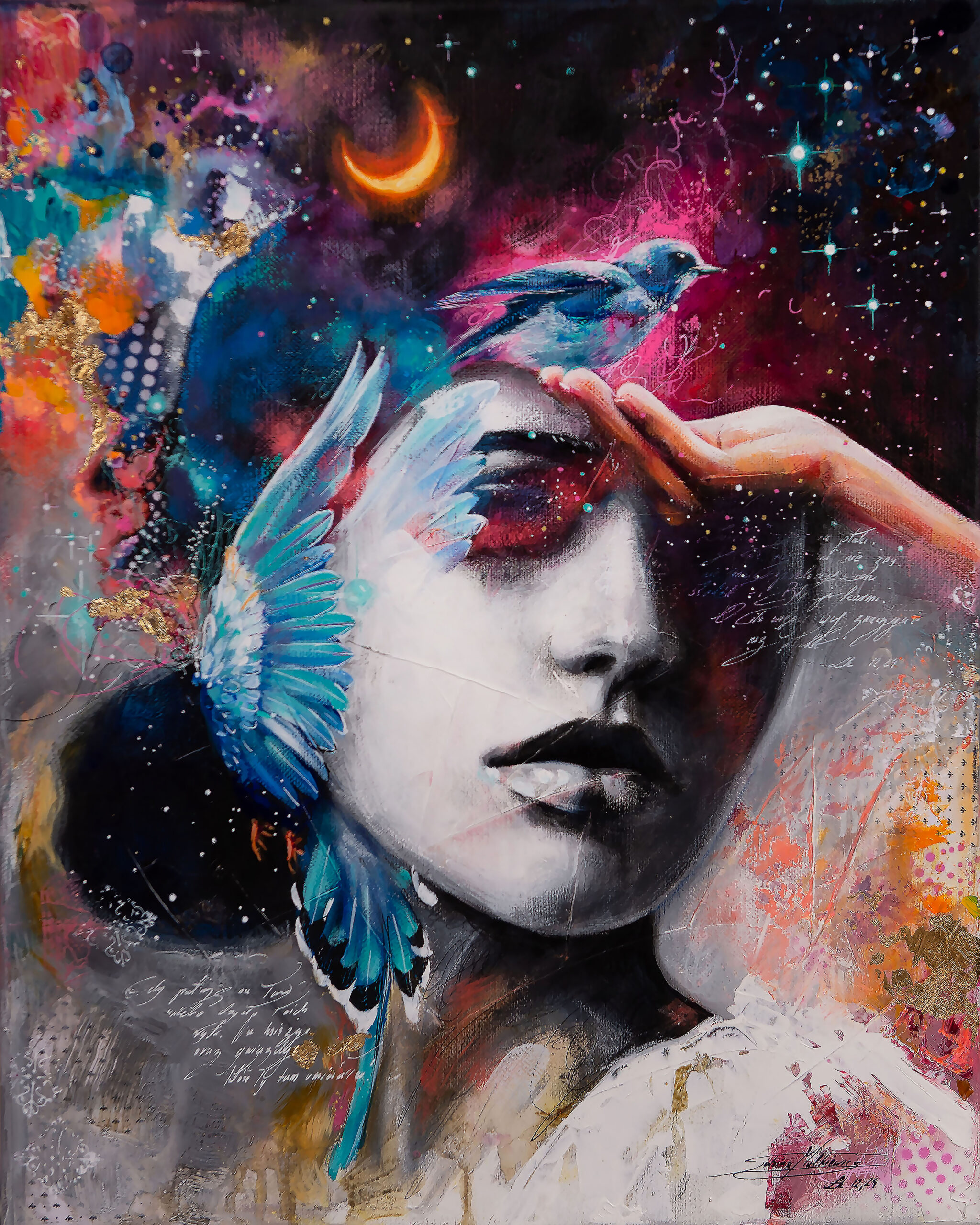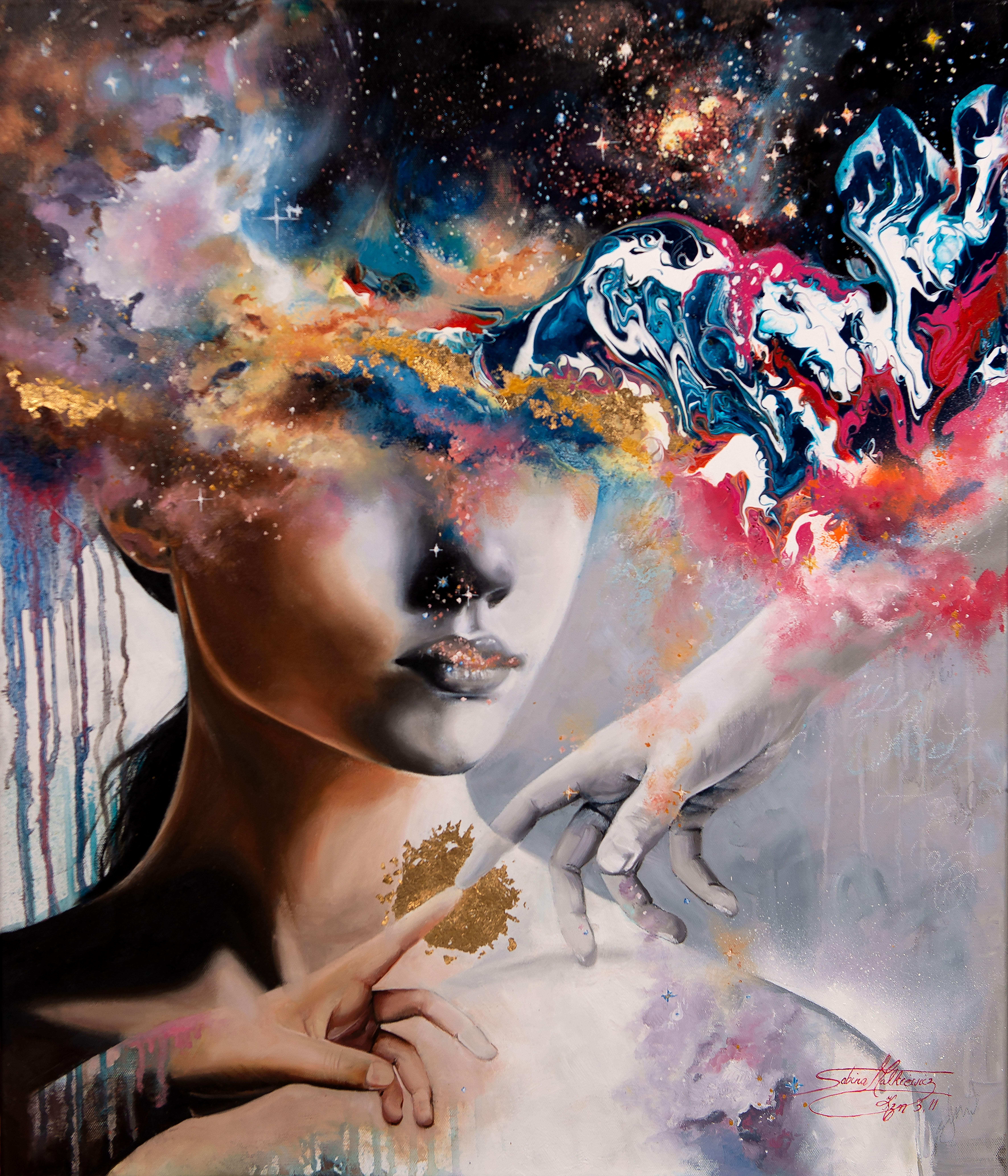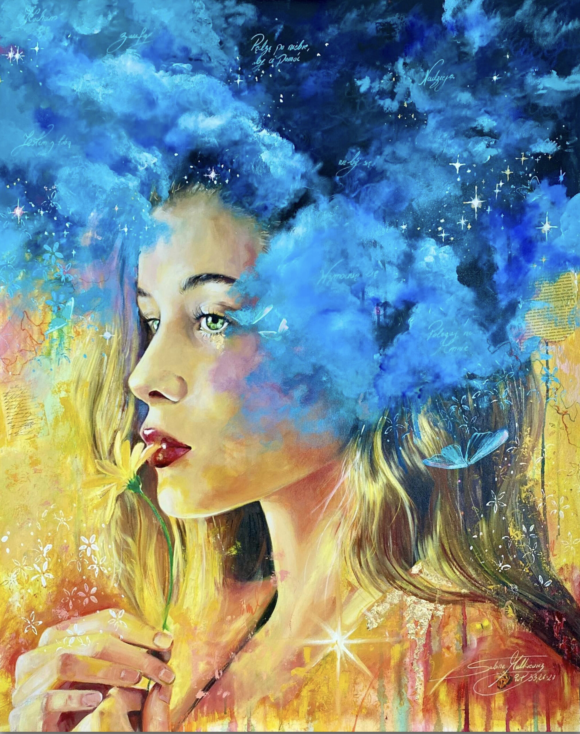 Ważna jest dla mnie jakość wykorzystywanych materiałów. Zależy mi na tym, aby każdy obraz charakteryzował się dbałością o szczegóły, trwałością kolorów, solidnością wykonania. Maluję na najwyższej jakości podobraziach, produkowanych w Polsce przy użyciu włoskich płócien (zarówno lnianych, jak i bawełnianych) oraz krosien z polskiego drewna sosnowego. Tworzę obrazy techniką Mixed Media, na którą składają się różnego rodzaju media malarskie zaczynając od ołówka, pisaków, tuszów alkoholowych, farb akrylowych, kończąc na farbach olejnych pokrytych werniksem. Każdy z elementów odznacza się wysoką jakością wykorzystanego materiału. Dlatego jestem pewna, że z biegiem lat blask obrazu nie zniknie.