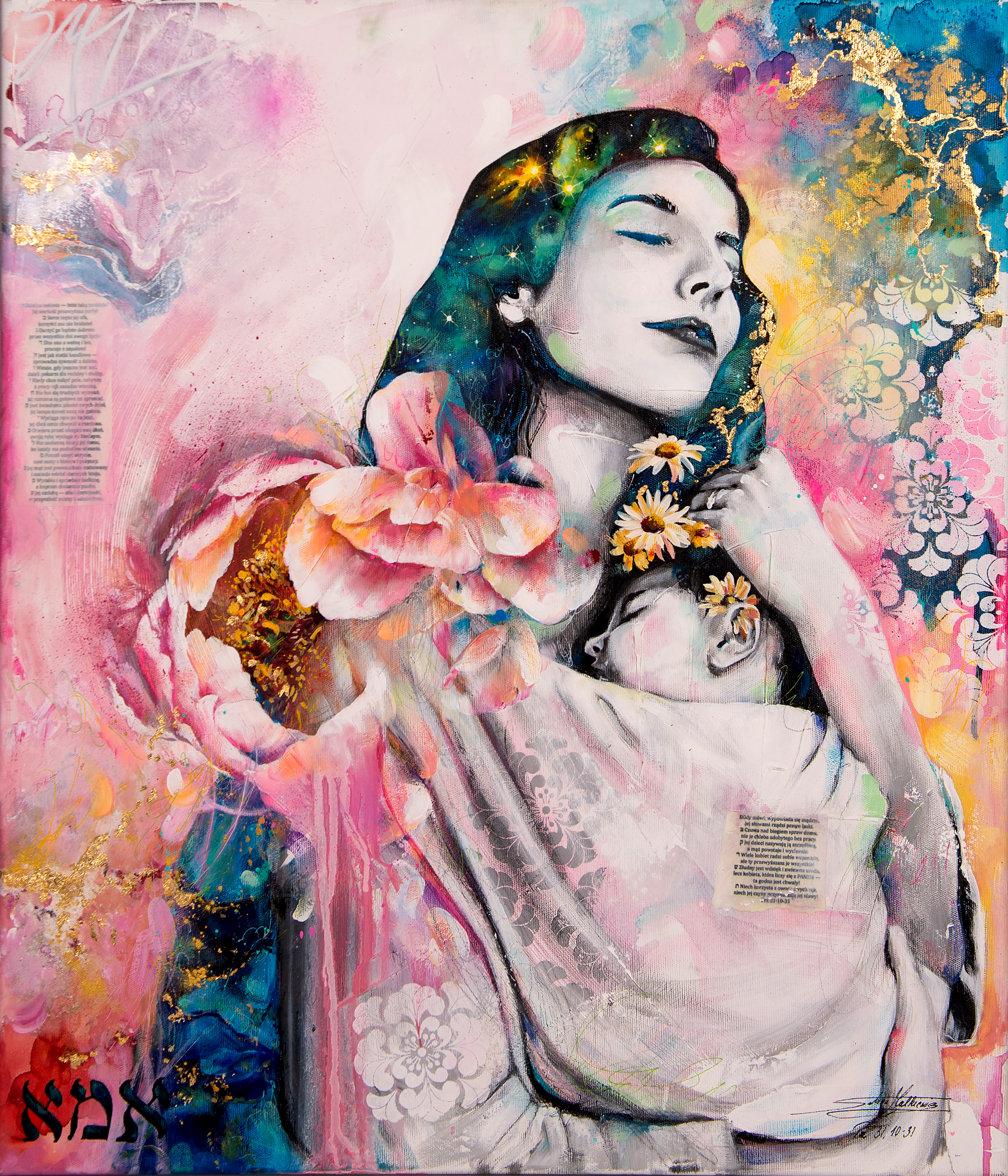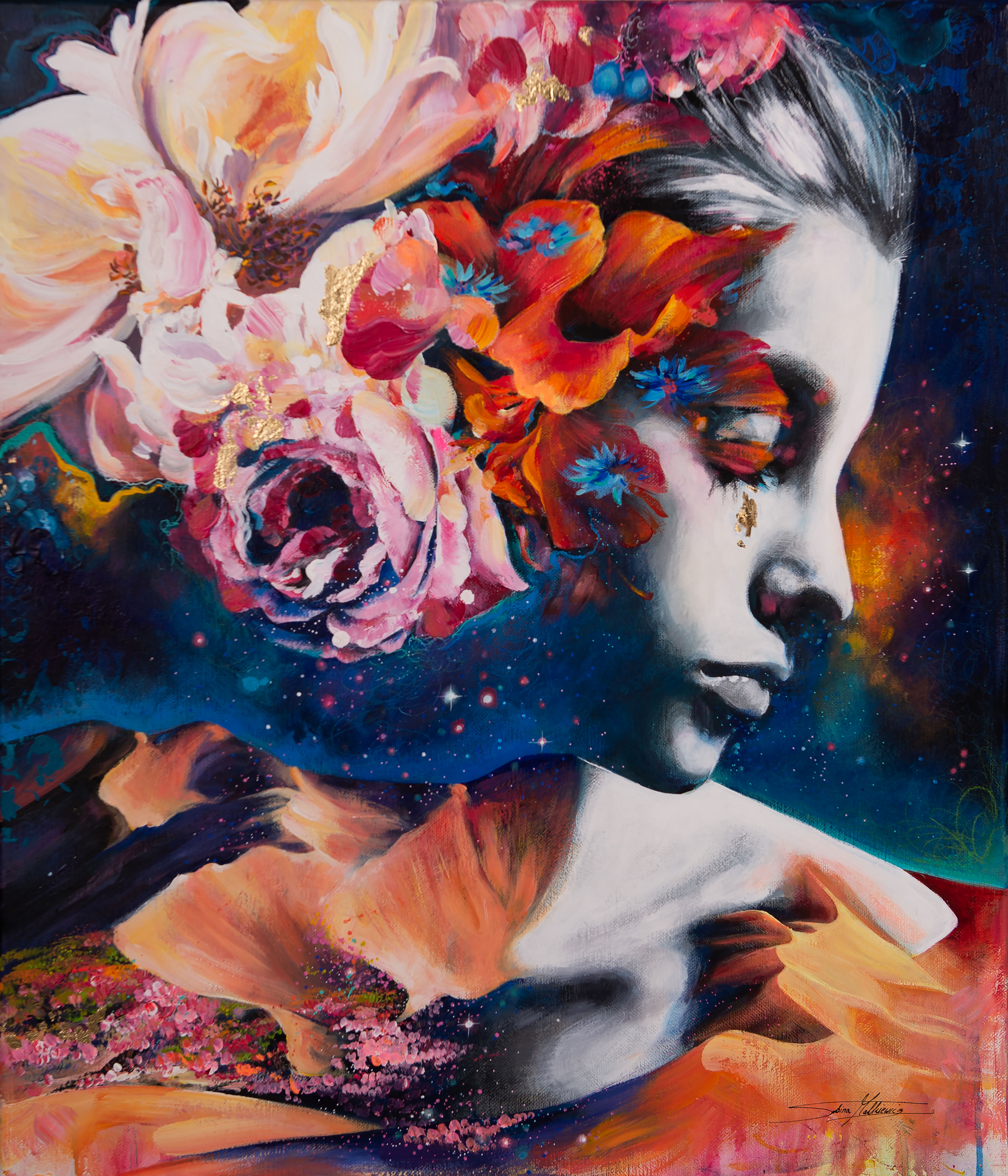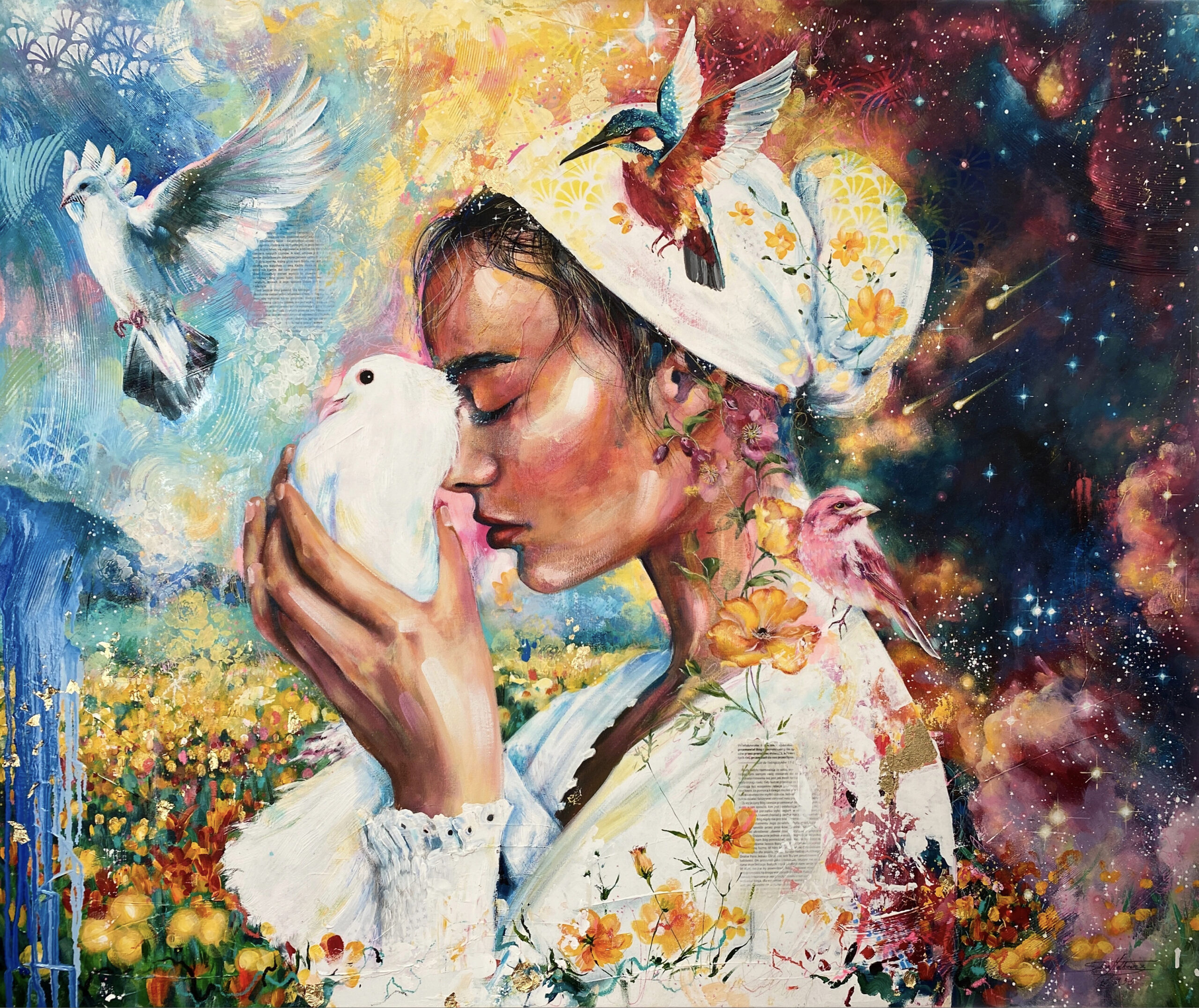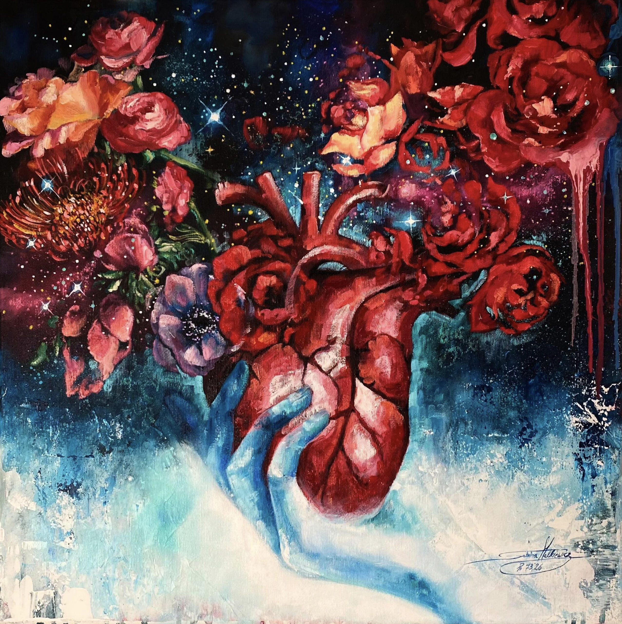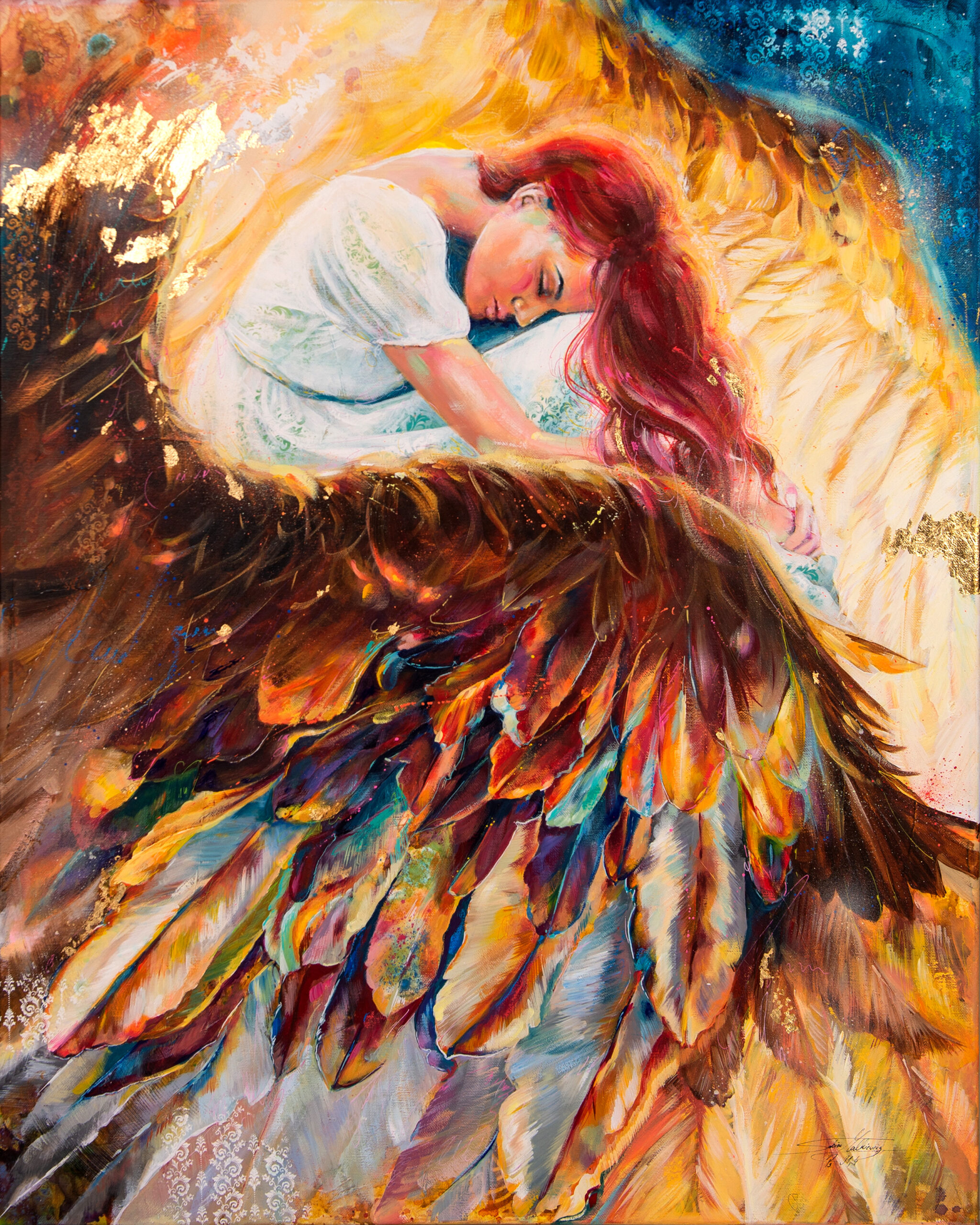 Ważna jest dla mnie jakość wykorzystywanych materiałów. Zależy mi na tym, aby każdy obraz charakteryzował się dbałością o szczegóły, trwałością kolorów, solidnością wykonania. Maluję na najwyższej jakości podobraziach, produkowanych w Polsce przy użyciu włoskich płócien (zarówno lnianych, jak i bawełnianych) oraz krosien z polskiego drewna sosnowego. Tworzę obrazy techniką Mixed Media, na którą składają się różnego rodzaju media malarskie zaczynając od ołówka, pisaków, tuszów alkoholowych, farb akrylowych, kończąc na farbach olejnych pokrytych werniksem. Każdy z elementów odznacza się wysoką jakością wykorzystanego materiału. Dlatego jestem pewna, że z biegiem lat blask obrazu nie zniknie.