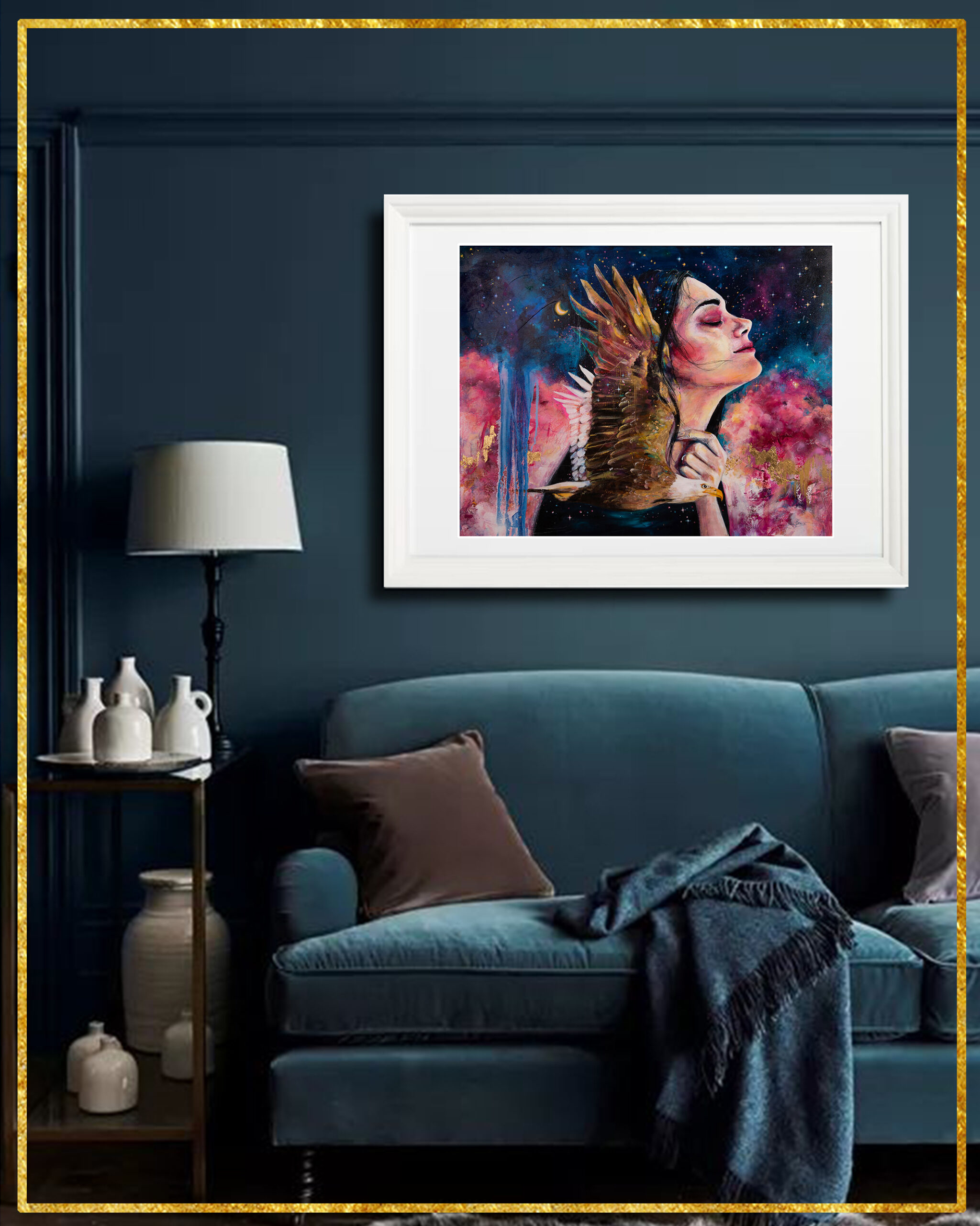 Z ramą (rzeźbiona złota/srebrna/biała):